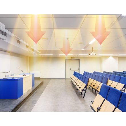 - Инфракрасное излучение направленно греет предметы или людей, расположенных под отопителем.