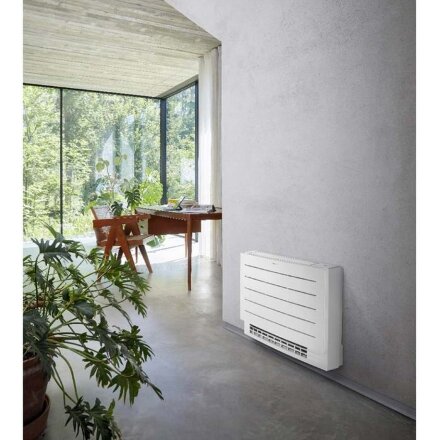 Напольно-потолочная сплит-система Daikin FVXM25A/RXM25R9 имеет номинальную мощность охлаждения 2400 Вт и обогрева 3400 Вт. Внутренний блок выполнен в виде плоской удлиненной консоли. Такая форма корпуса имеет преимущество как вертикальной, так и горизонтальной установки. Консоль можно закрепить на стене в районе пола или подвесить на кронштейнах под потолком. Такое размещение актуально для помещений с ограниченным пространством. Или если установка других видов кондиционеров невозможна из-за ограничений дизайна или расстановки мебели.