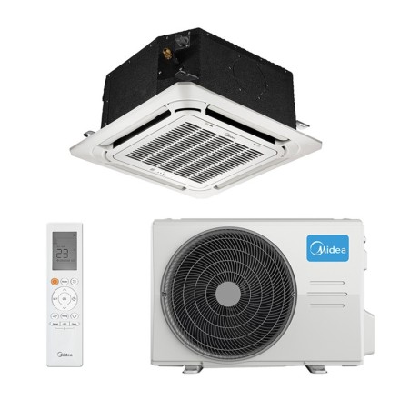 Кассетная сплит-система Midea MCA3-18HRN1-QB6/MOX330-18HN1-QB6/-40/T-MBQ4-03E имеет номинальную мощность охлаждения 5280 Вт и обогрева 5570 Вт. Внутренний блок в виде кассеты монтируется внутрь подвесного потолка. За счет этого такой кондиционер становится почти незаметным. Остаются видны лишь декоративные панели, которые также выполняют функцию раздачи воздуха. Кстати, кассетные кондиционеры - единственные сплит-системы, которые направляют охлажденный или нагретый воздух во все стороны благодаря 4-м направляющим жалюзи. В совокупности с высокой скоростью воздушного потока это обеспечивает эффективное охлаждение или обогрев больших по площади помещений с высокими потолками.