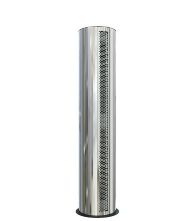 Тепломаш КЭВ-90П6144W нерж - водяная тепловая завеса. Здесь воздух нагревается теплом от горячей воды, а не электрическим нагревателем. Внутри стоит медно-алюминиевый теплообменник, который аккумулирует тепло от воды. За счет этого расходы на нагрев воздуха полностью отсутствуют. От электричества работает только вентилятор, двигатель которого приводит в движение вращающиеся лопасти. По производительности вентилятора 500 куб.м. в час завеса КЭВ-90П6144W нерж подойдет для зашиты проема высотой до 3.5 м.